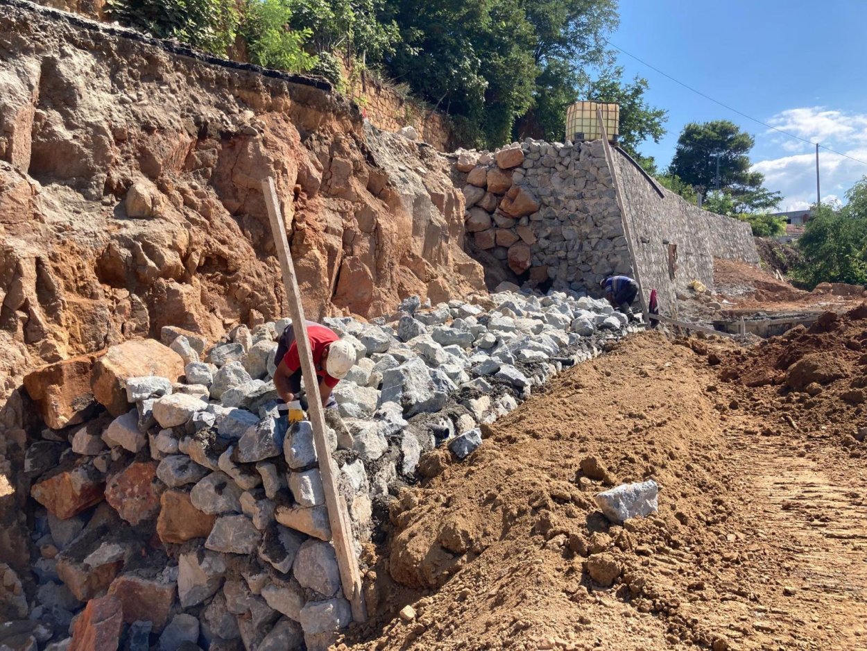 100 metre uzunluğunda 11 metre yüksekliğinde yapılan taş duvarda çalışmalar devam ediyor. 45. metresinde çalışan ekipler çalışmaları kısa sürede tamamlayarak vatandaşlara güvenli bir güzergâh sunmuş olacak.