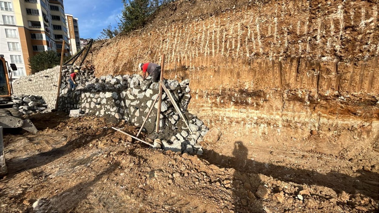Ordu Büyükşehir Belediyesi, Fatsa ilçesi Evkaf Mahallesi’nde taş duvar çalışması gerçekleştirdi.