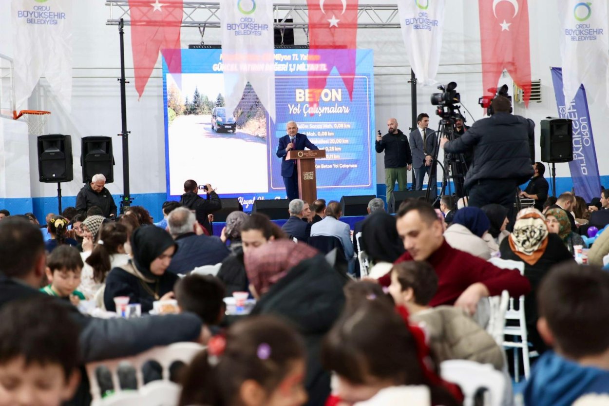 “Burada mutluluk tablosu çiziyoruz. Siyasi parti temsilcilerimiz, sivil toplum kuruluşlarımız, çocuklarımızla çok güzel bir birliktelik tablosu çiziyoruz. Allah ağzımızın tadını bozmasın. Biz sizleri çok seviyoruz. Yaptığımız yatırımlarla da Mesudiye’ye özel bir ilgi gösteriyoruz. Mesudiye’ye yatırımlarda biraz bol kepçe girdik, yapmaya da devam edeceğiz. Dereyolu, doğalgazı, göletleri, Organize Sanayileri ile çok güzel çalışmaları birlikte yapacağız. Mesudiye özgül ağırlığı yüksek bir ilçe, farklı bir yer. Siz özel ve güzel insanlarla birlikte çorbamızı içmenin mutluluğu içindeyiz.”