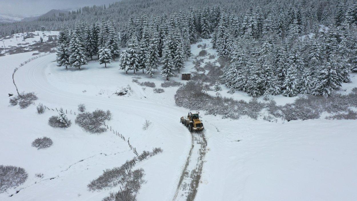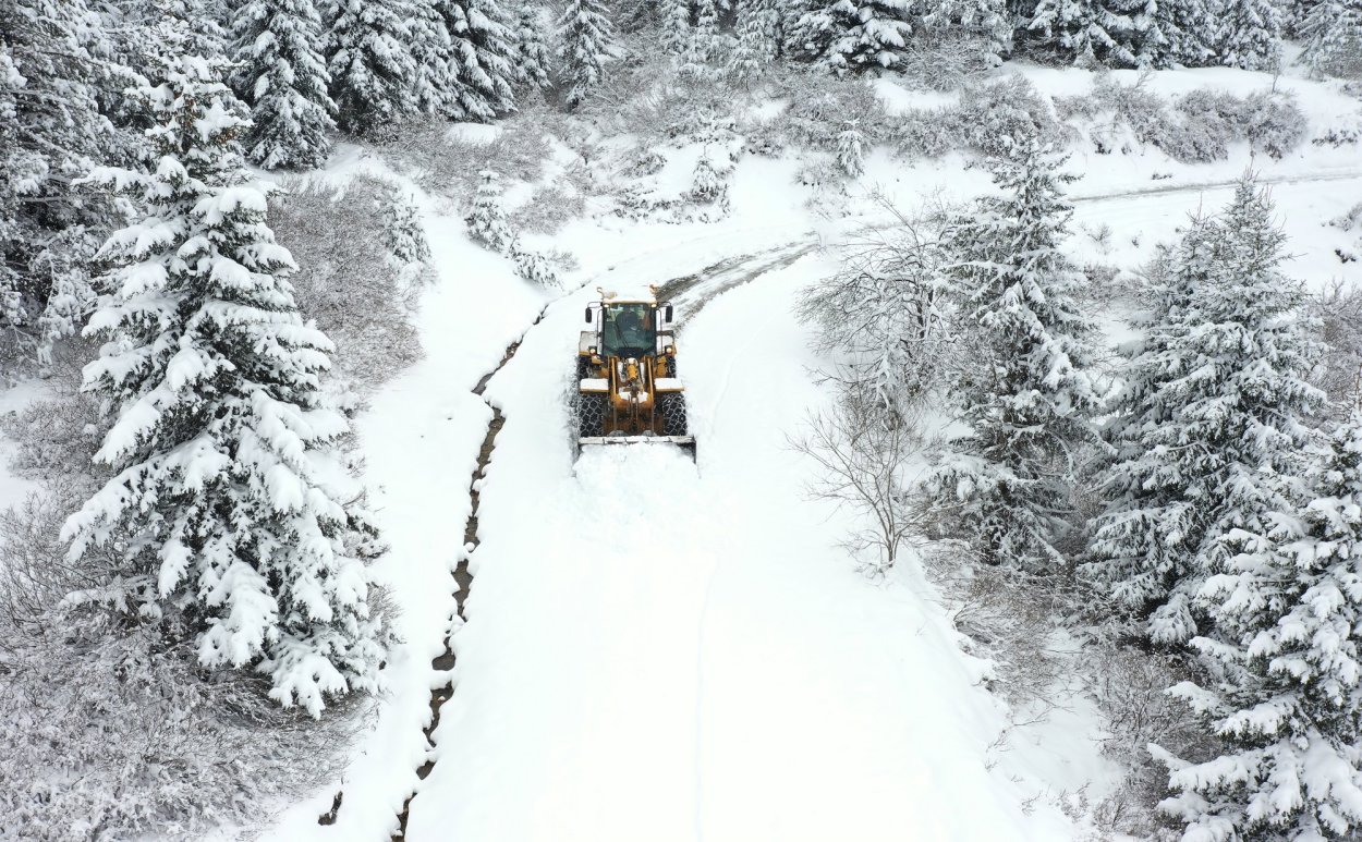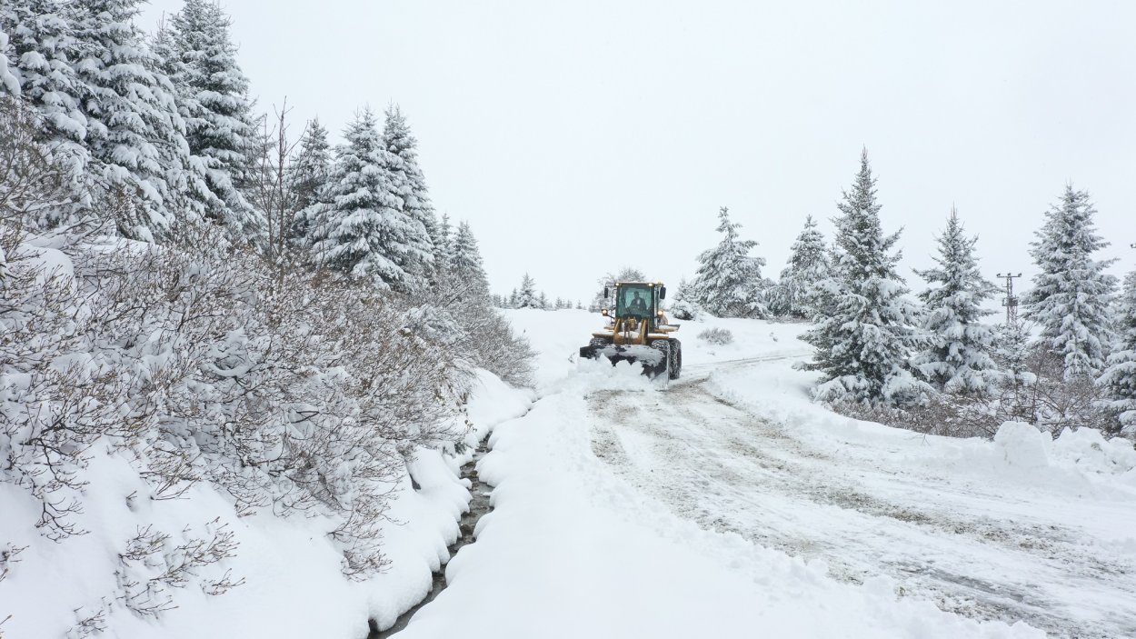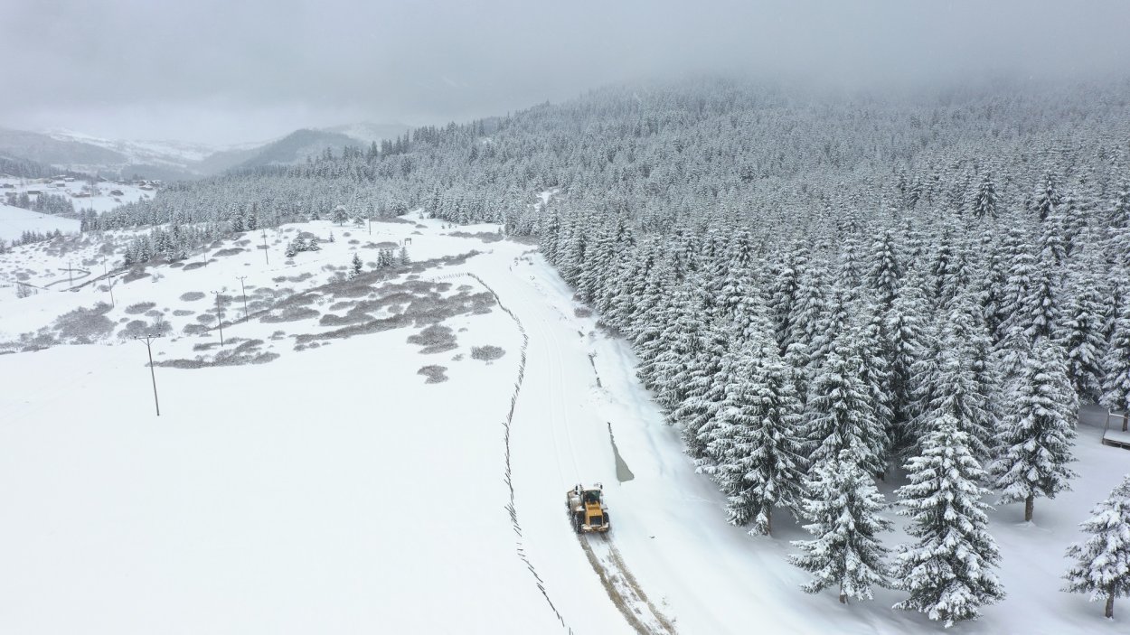 Nisan ayında yağan kar yağışıyla vatandaşların ulaşımda aksaklık yaşaması için sıkı bir çalışma sergileyen ekipler yolların kapanmasının önüne geçmek amacıyla kar küreme, buzlanmaya karşı da tuzlama işlemi yürütüyor.