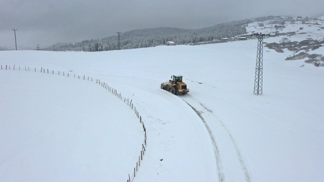 Ordu Büyükşehir Belediyesi ekipleri kırsal mahallelerde 124 araç ve iş makinesi, 163 personelle karla mücadele çalışmalarını sürdürüyor.