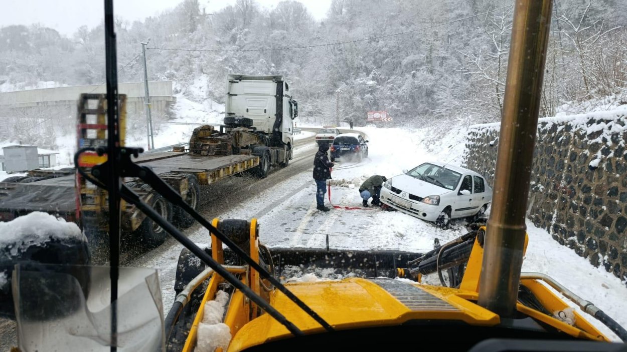 Yolları ulaşıma açan ekipler zorda kalan araç sahipleri ve vatandaşların da imdadına yetişiyor.
