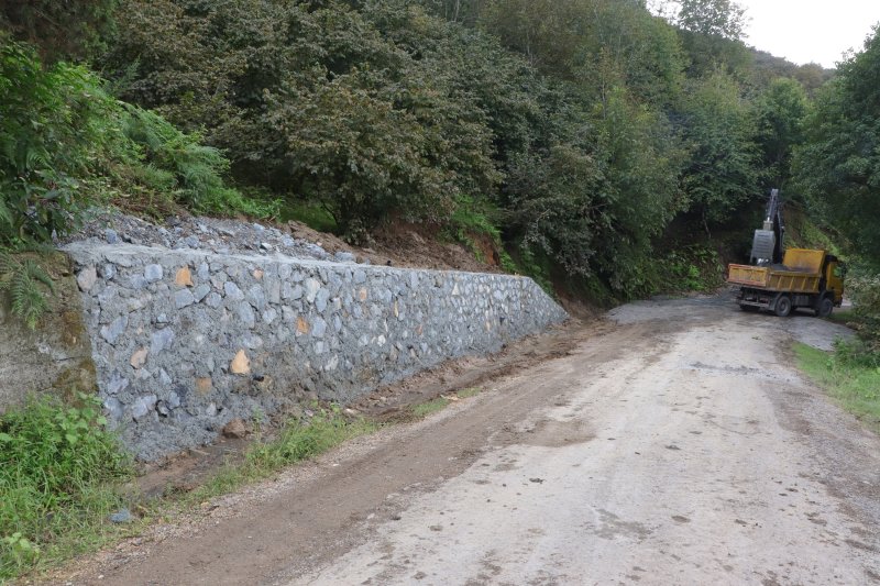 Ordu’nun zorlu coğrafyasında en uzak mahallelere kadar ulaşım hizmeti götüren Ordu Büyükşehir Belediyesi, taş ve perde duvarlarla da yaptığı ve yapacağı yolların ömrünü uzatıyor.
