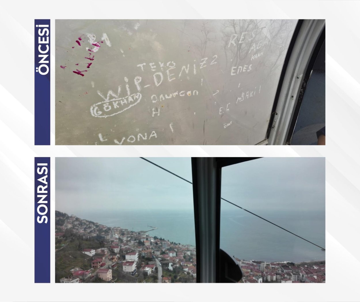 Teknik bakımların yanı sıra kullanım sırasında zarar verilen teleferik kabinleri de yenilendi. Sosyal medya hesapları üzerinden teleferiğin eski hali ve yeni halini gösteren bir video paylaşan Ordu Büyükşehir Belediye Başkanı Dr. Mehmet Hilmi Güler, teleferiğin yenilendiğini vurguladı. Başkan Güler o paylaşımında, “İsimleri teleferiğe değil, kalbinize yazın. Teleferik kabinlerimiz artık yepyeni” ifadelerini kullandı.